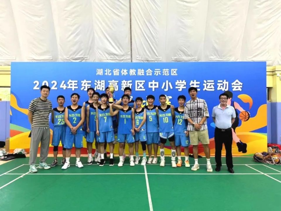 初中篮球队自建队以来,探索钻研,赋能精进,在2023年9月首次参加武汉市体育传统特色学校暨武汉市中学生篮球联赛,就一路过关斩将,取得了乙组第二名的好成绩,并顺利跻身初中男子甲组(全市前八强)。在东湖高新区中学生篮球赛中,我们从2022年的第六名提升到2023年的第二名,2024年,跃至初中组男篮冠军!今年,我校也被成功评选为东湖新技术开发区“篮球特色项目学校”。