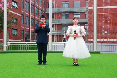 随后,三(2)班“我行我秀”节目表演为升旗仪式增添了一抹亮丽的色彩。