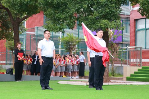今天是2025年9月22日,武汉光谷为明实验学校小学部全体师生在操场举行第四周升旗仪式。本周升旗仪式由 三(2)中队承办。升旗手是况贤涛老师;护旗手李攀老师、吴涛老师。