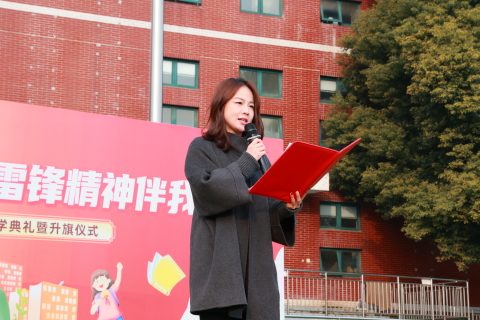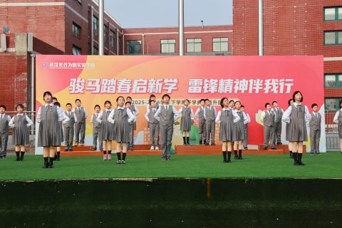 今天是2026年3月9日,武汉光谷为明实验学校小学部全体师生在操场举行第一周升旗仪式。本周升旗仪式由 优五(2)中队承办。升旗手是 王刚 老师 ;护旗手是陈斌、谭平老师 ;主持人 向姝安 、 向天辰。