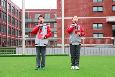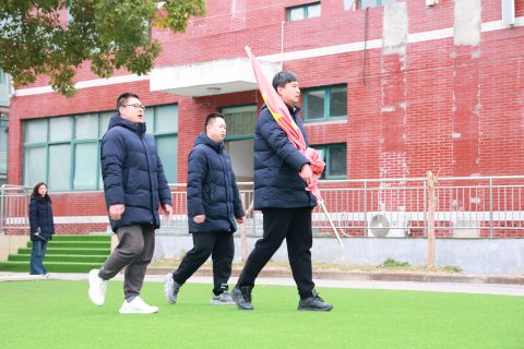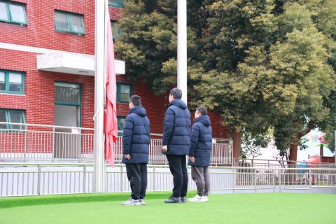 今天是2026年1月12日,武汉光谷为明实验学校小学部全体师生在操场举行第二十周升旗仪式。本周升旗仪式由 国五(1)中队承办。升旗手是王刚老师;护旗手是陈斌、谭平老师 。