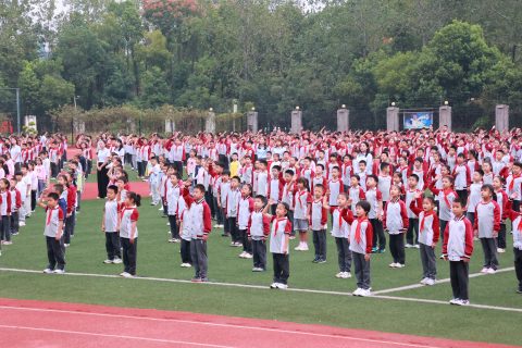 今天是2025年9月22日,武汉光谷为明实验学校小学部全体师生在操场举行第四周升旗仪式。本周升旗仪式由 三(2)中队承办。升旗手是况贤涛老师;护旗手李攀老师、吴涛老师。