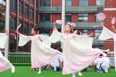 随后,三(3)班“我行我秀”节目表演为升旗仪式增添了一抹亮丽的色彩。