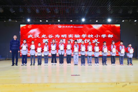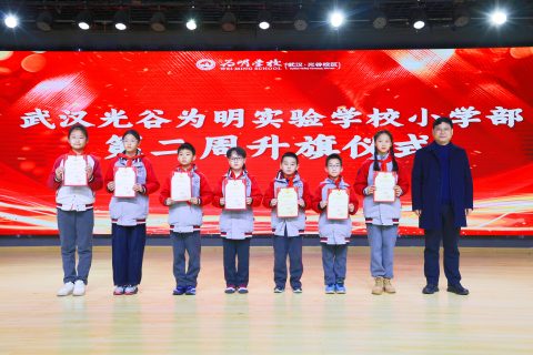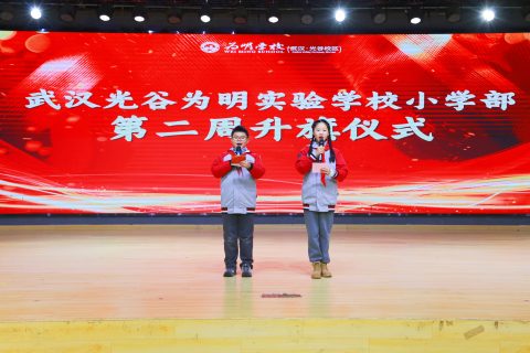 今天是2026年3月16日,武汉光谷为明实验学校小学部全体师生在报告厅举行第二周升旗仪式。本周升旗仪式由 优五(3)中队承办。主持人 钟沐宸 、 袁睦城。