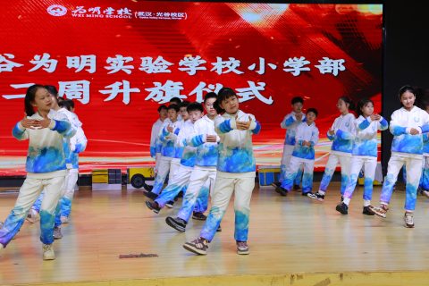 随后,优五(3)班“我行我秀”节目表演为升旗仪式增添了一抹亮丽的色彩。